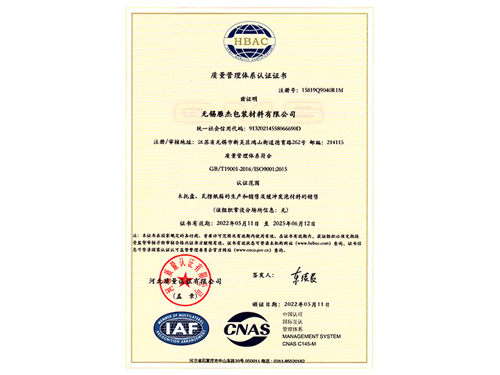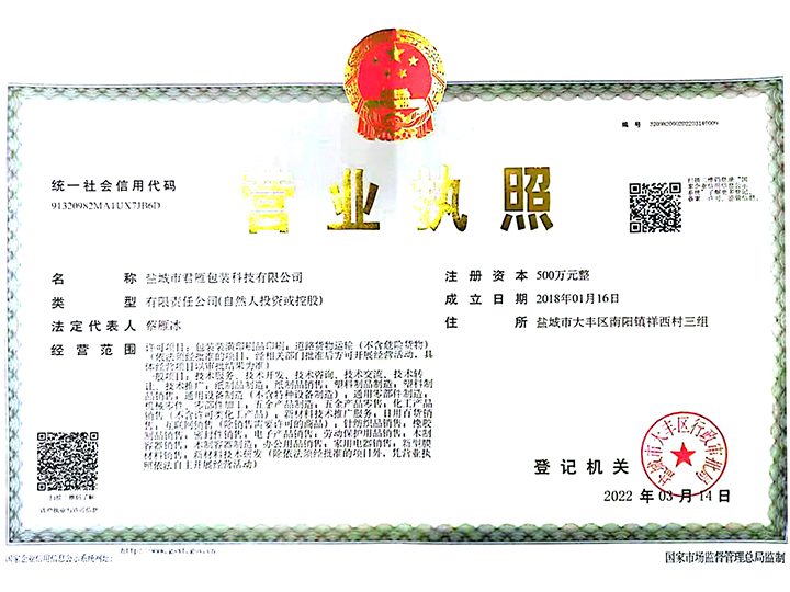企業(yè)資質(zhì)鹽城市君雁包裝科技有限公司,始創(chuàng)于2021年,公司面積20000平方米。公司位于中國(guó)鹽城大豐區(qū)南陽(yáng)鎮(zhèn)祥西村三組,是一家集研發(fā)、生產(chǎn)、銷(xiāo)售為一體的包裝材料企業(yè),產(chǎn)品涉及:外包裝紙箱,防水紙箱,涂蠟紙箱,浸蠟紙箱,冷柜紙箱,木包裝箱,免熏蒸木包裝箱,木托盤(pán),EPE珍珠棉,珍珠棉袋,EVA板材,EVA大板,包裝海綿等包裝材料。包裝設(shè)計(jì)制造符合API、ANSI、ASTM、NACE、ISO、EN、BS、DIN、MSS SP等國(guó)際標(biāo)準(zhǔn)的要求,在鹽城以及周邊城市的市場(chǎng)上有良好的評(píng)價(jià)。公司擁有先進(jìn)的生產(chǎn)設(shè)備,嚴(yán)格的管理制度和高素質(zhì)的人才團(tuán)隊(duì),保證了高質(zhì)量的產(chǎn)品和良好的服務(wù),同時(shí)我司還可以根據(jù)客戶(hù)特殊工況需求,提供全套包裝技術(shù)解決方案。